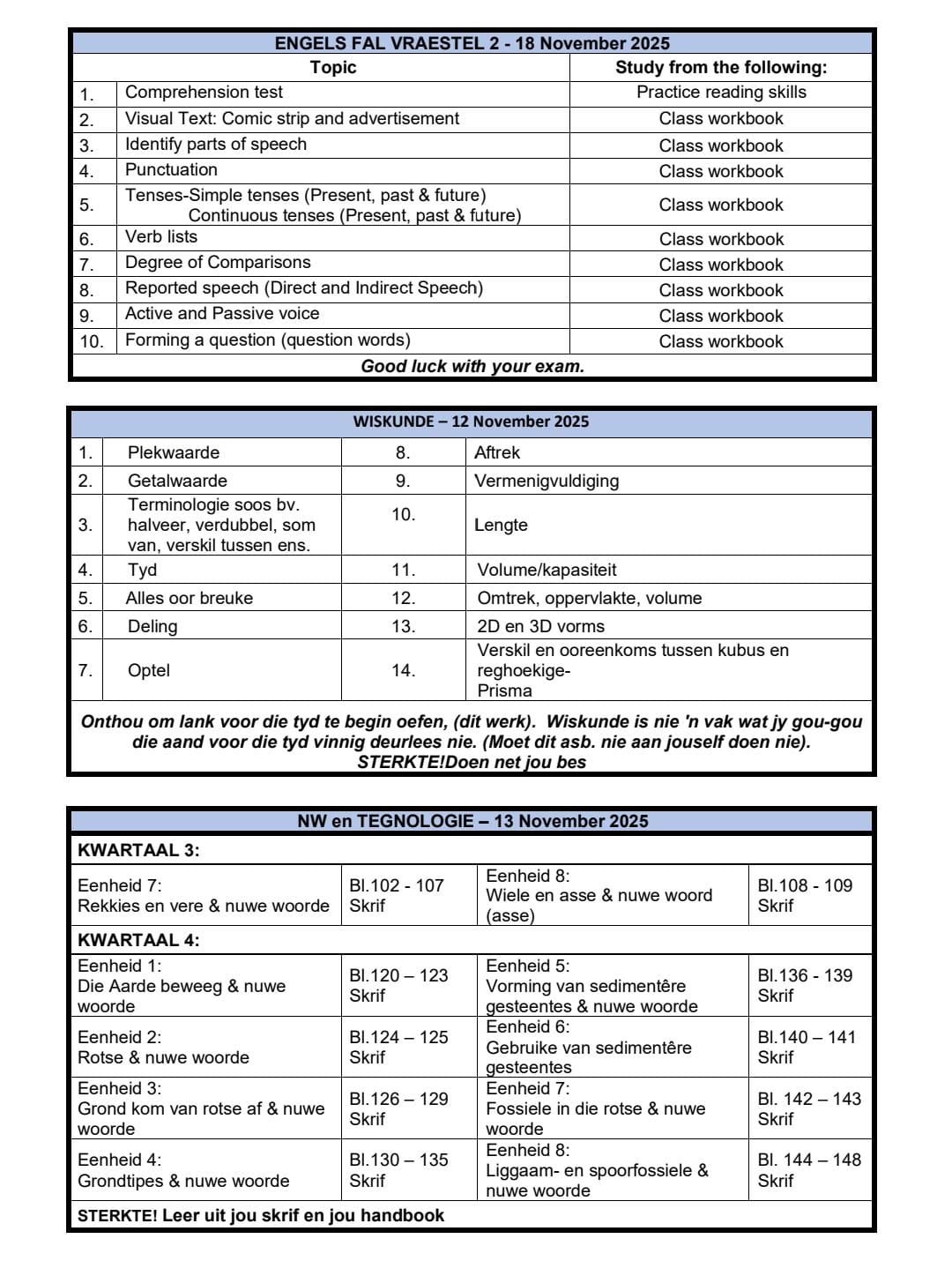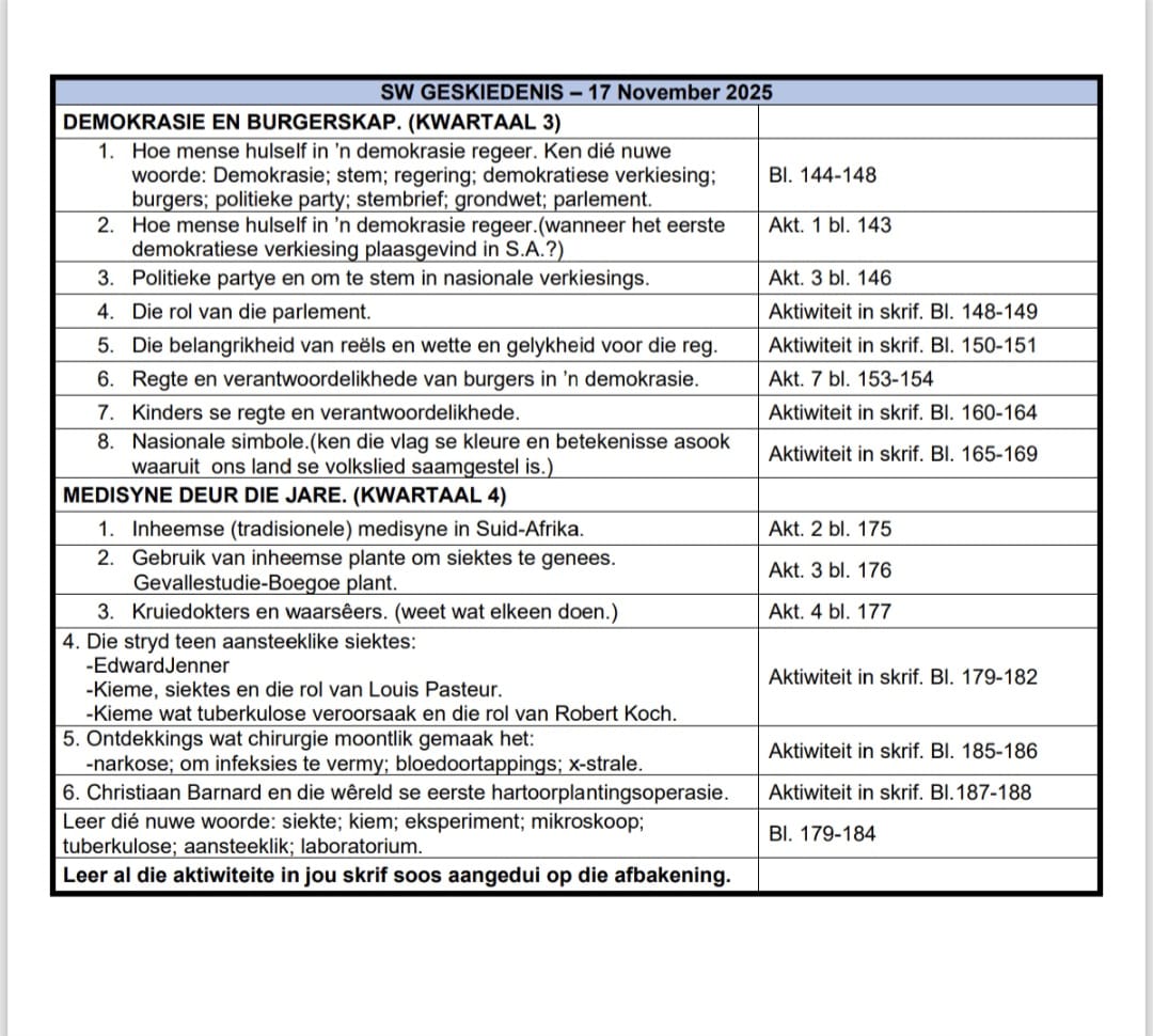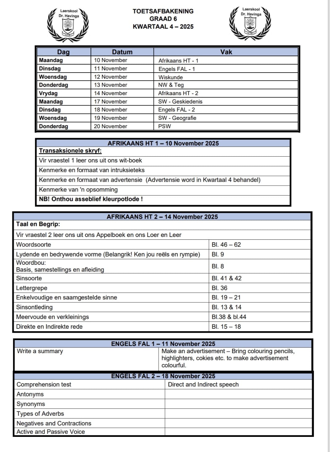 Kyk of laai die nuutste toetsrooster vir Graad 4β7.